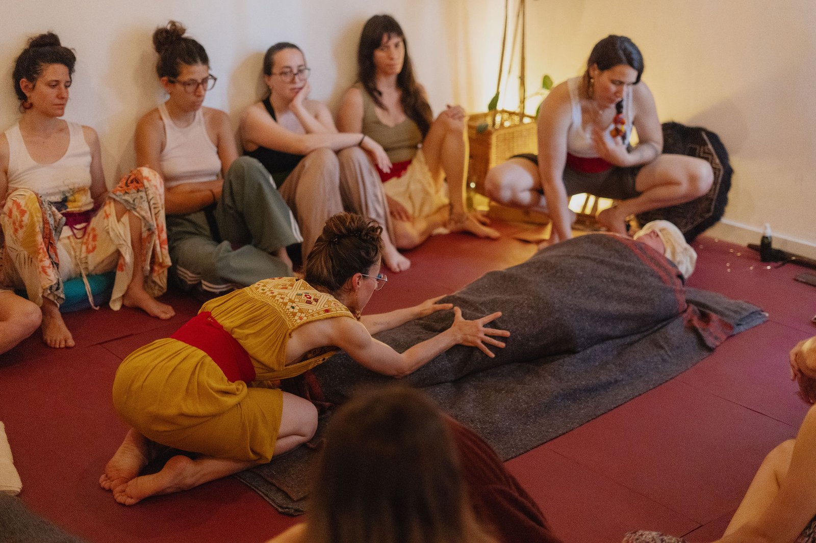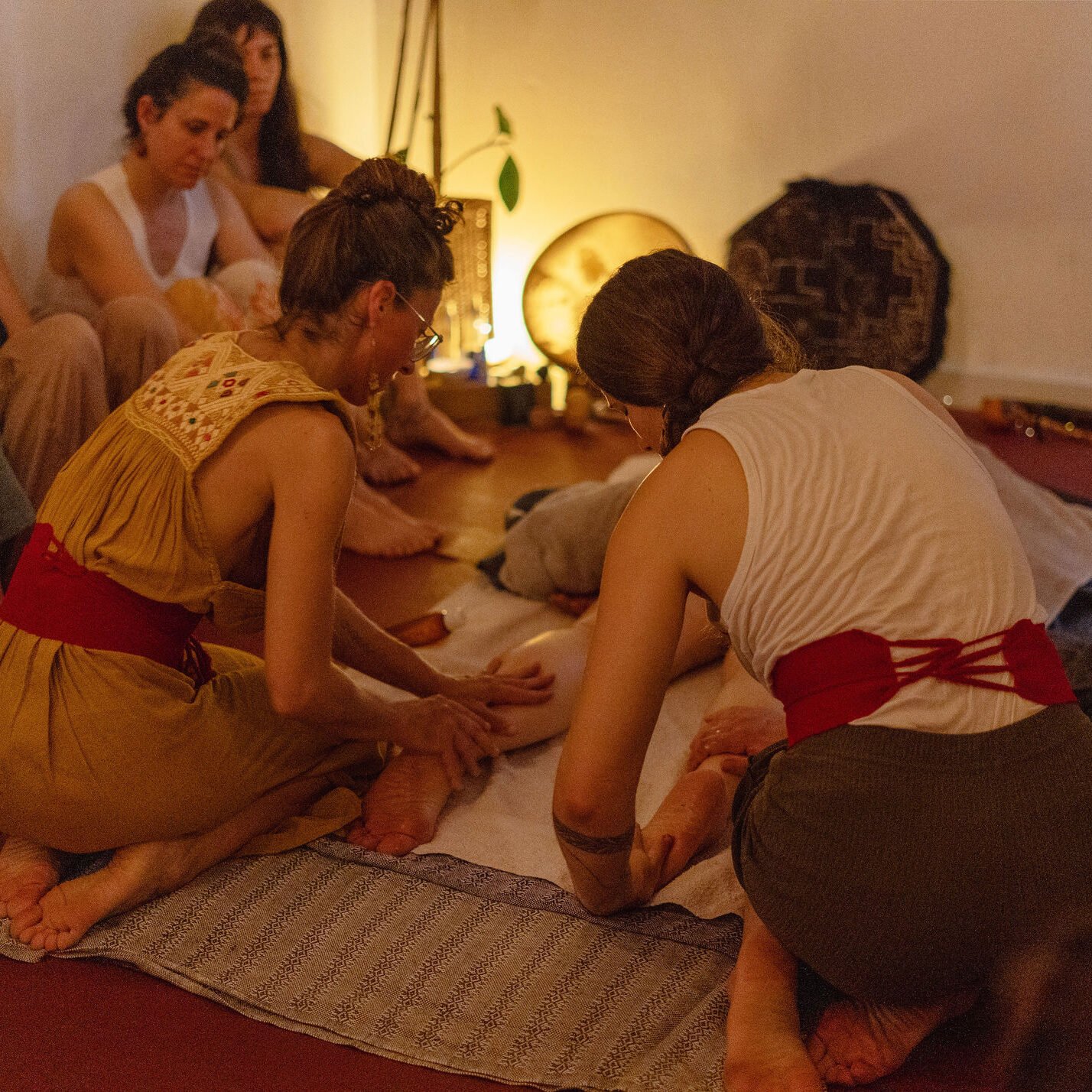 Este ritual lo ofrecemos siempre dos personas. Me acompañan normalmente Anandi, Clara o Ana. Todas ellas traen su propia medicina, conocimiento y sabiduría, conexión transpersonal, canalización energética…incluso la sabiduría de los aceites esenciales.