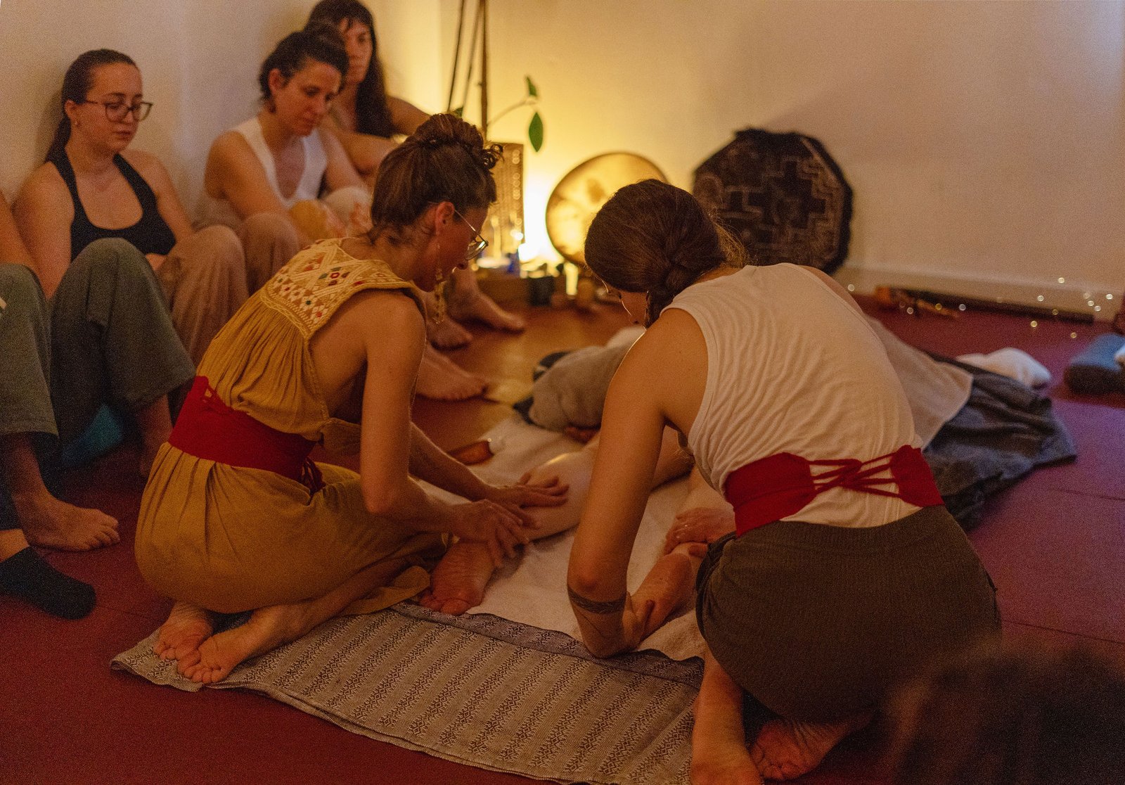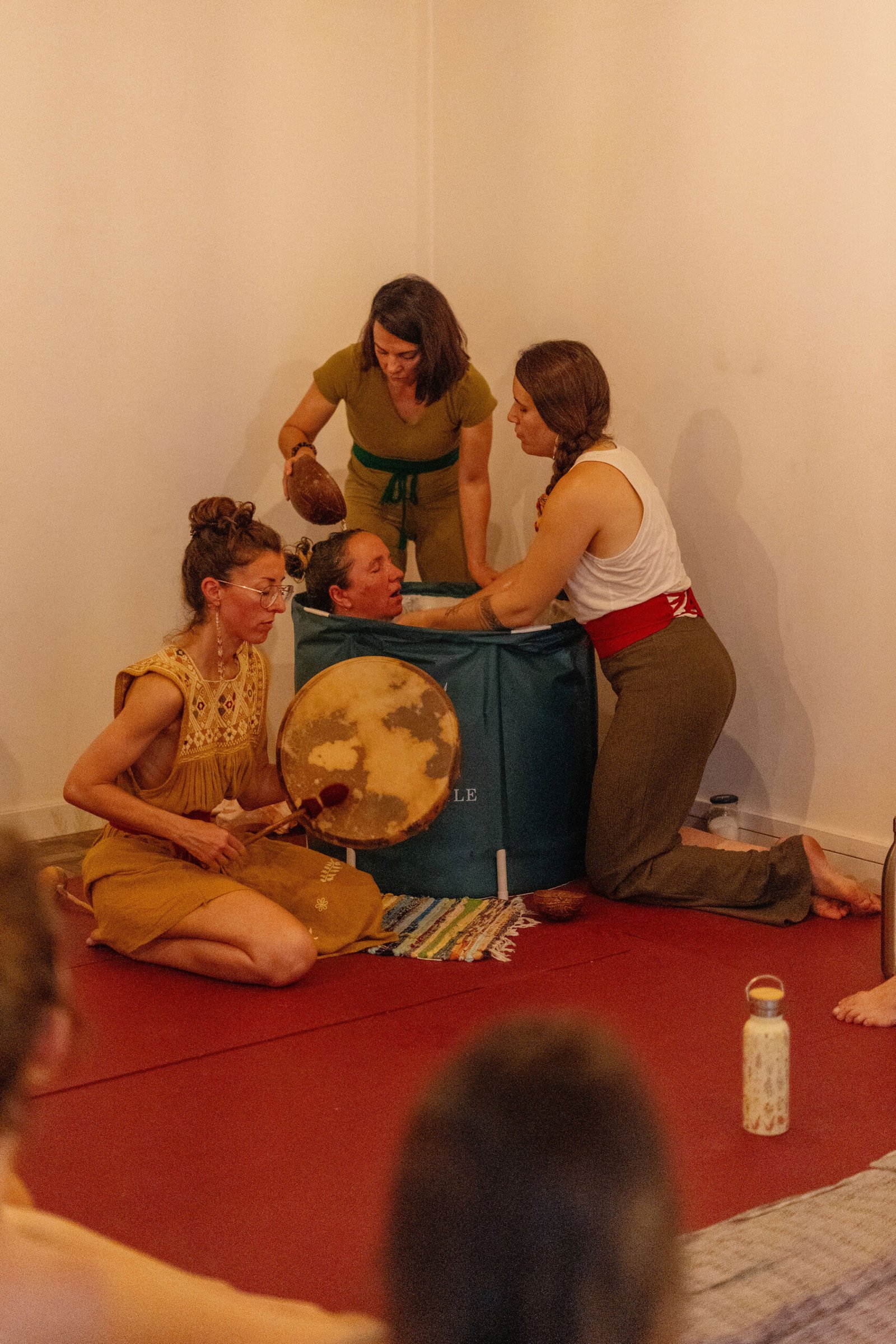 Este ritual lo ofrecemos siempre dos personas. Me acompañan normalmente Anandi, Clara o Ana. Todas ellas traen su propia medicina, conocimiento y sabiduría, conexión transpersonal, canalización energética…incluso la sabiduría de los aceites esenciales.